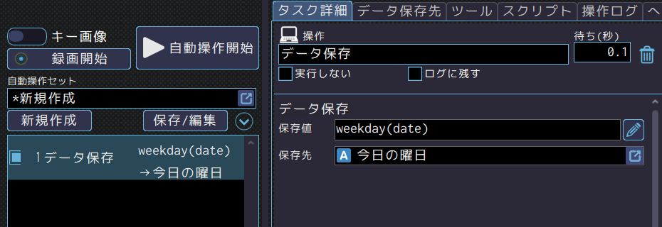 - 操作メニューの「関数/スクリプト」から「データ保存」の操作を追加