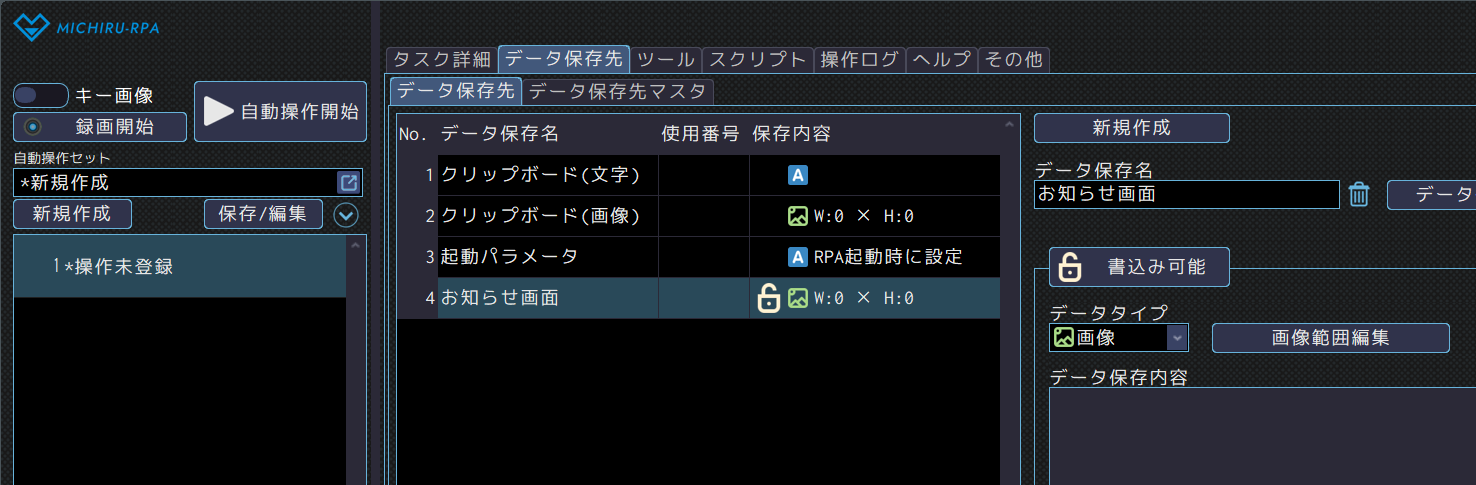 ・データ保存先:お知らせ画面