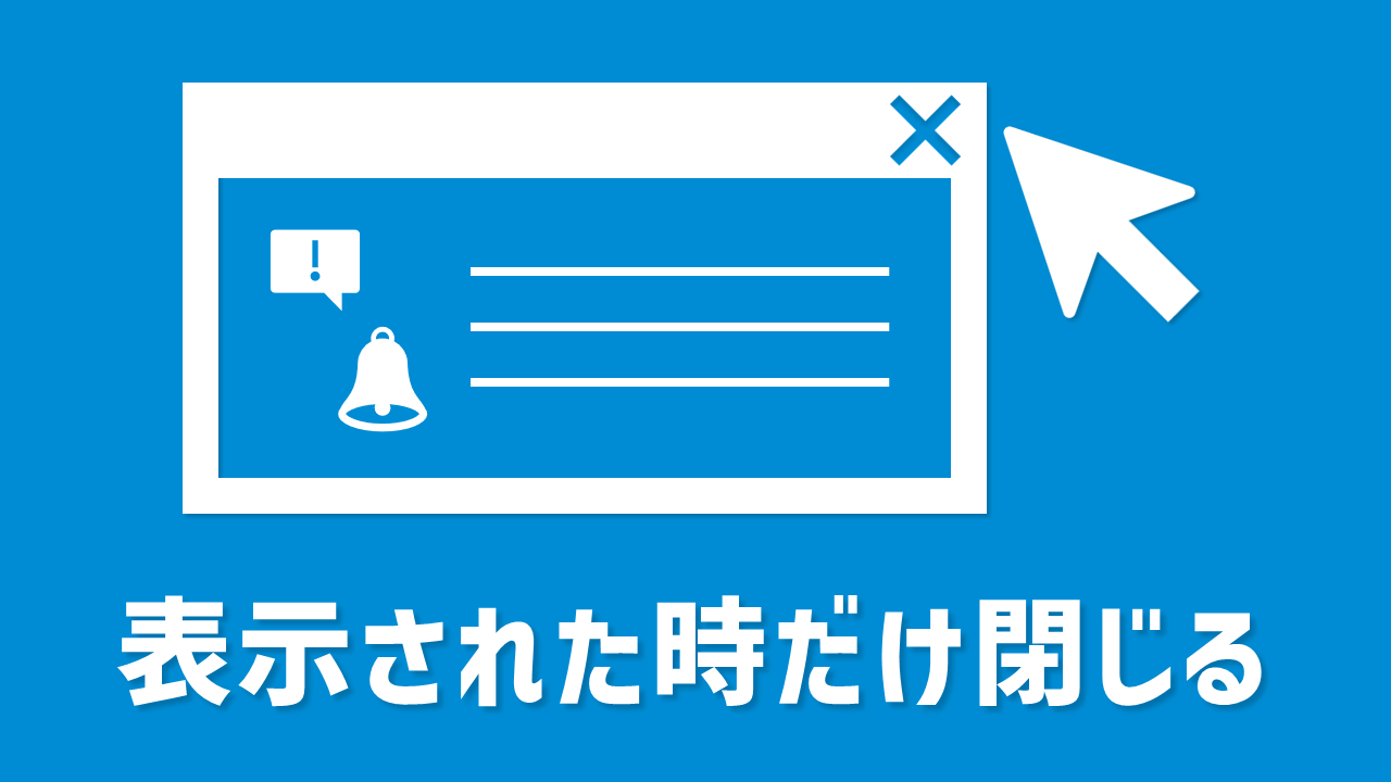 今回は、このような毎回表示されるとは限らない画面を、表示された時だけ閉じる方法をご紹介します。