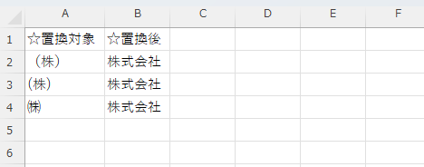 対象文字列内に(株) 、(株)、 ㈱のいずれも含まれない場合は、対象文字列がそのままデータ保存先に保存されます。