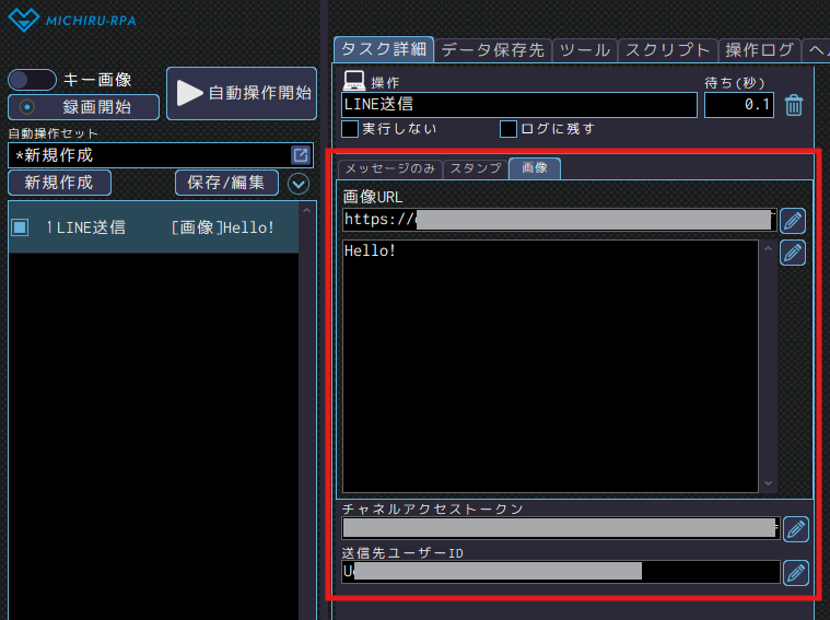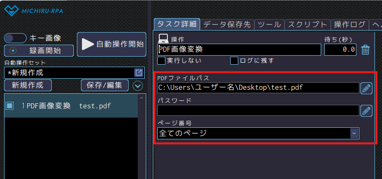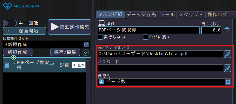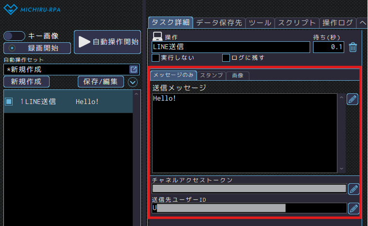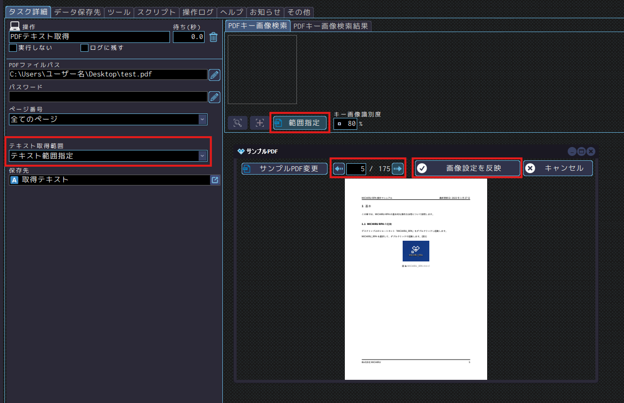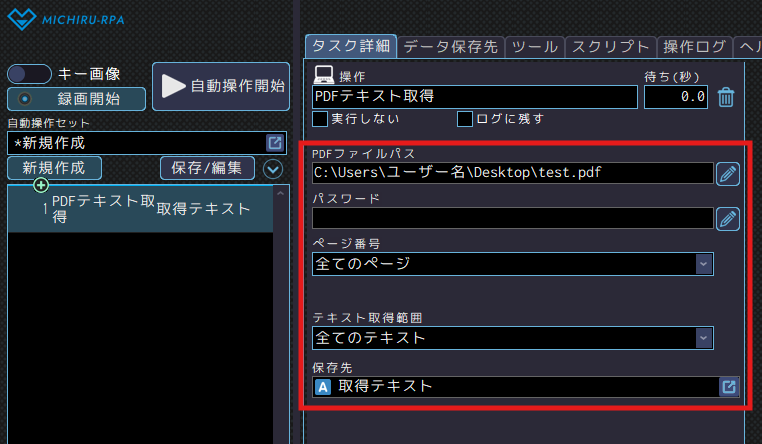 各操作の詳細設定は拡張画面で行います。操作対象画面や操作の場所を特定するために必要な設定等、各操作に共通する内容は MICHIRU RPA の仕組みと詳細設定をご覧ください。