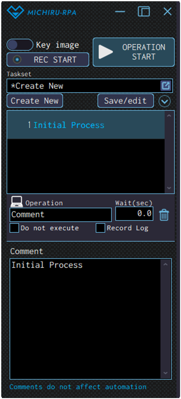 The text entered in the comment field is displayed in blue. The examples below shows a comment labeled ‘Initial Processing”. These comments do not affected with the automation in anyway.