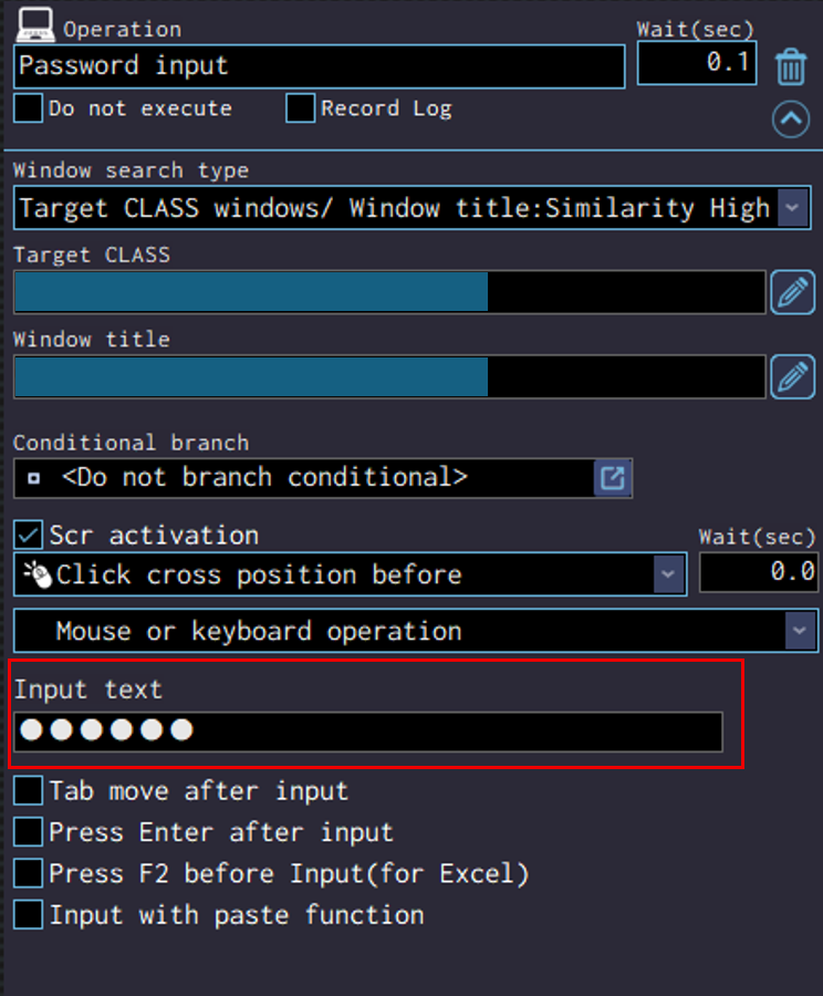 Move the cursor to the position for inputting texts, press the shortcut key to capture the image / element, then change the operation type in the operation box to “Text input” in the “Text operation” menu.