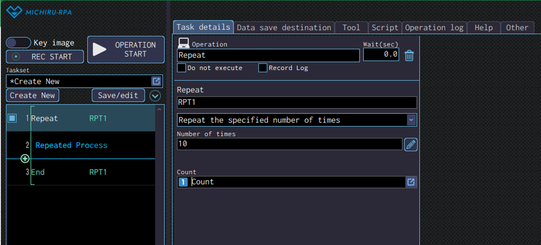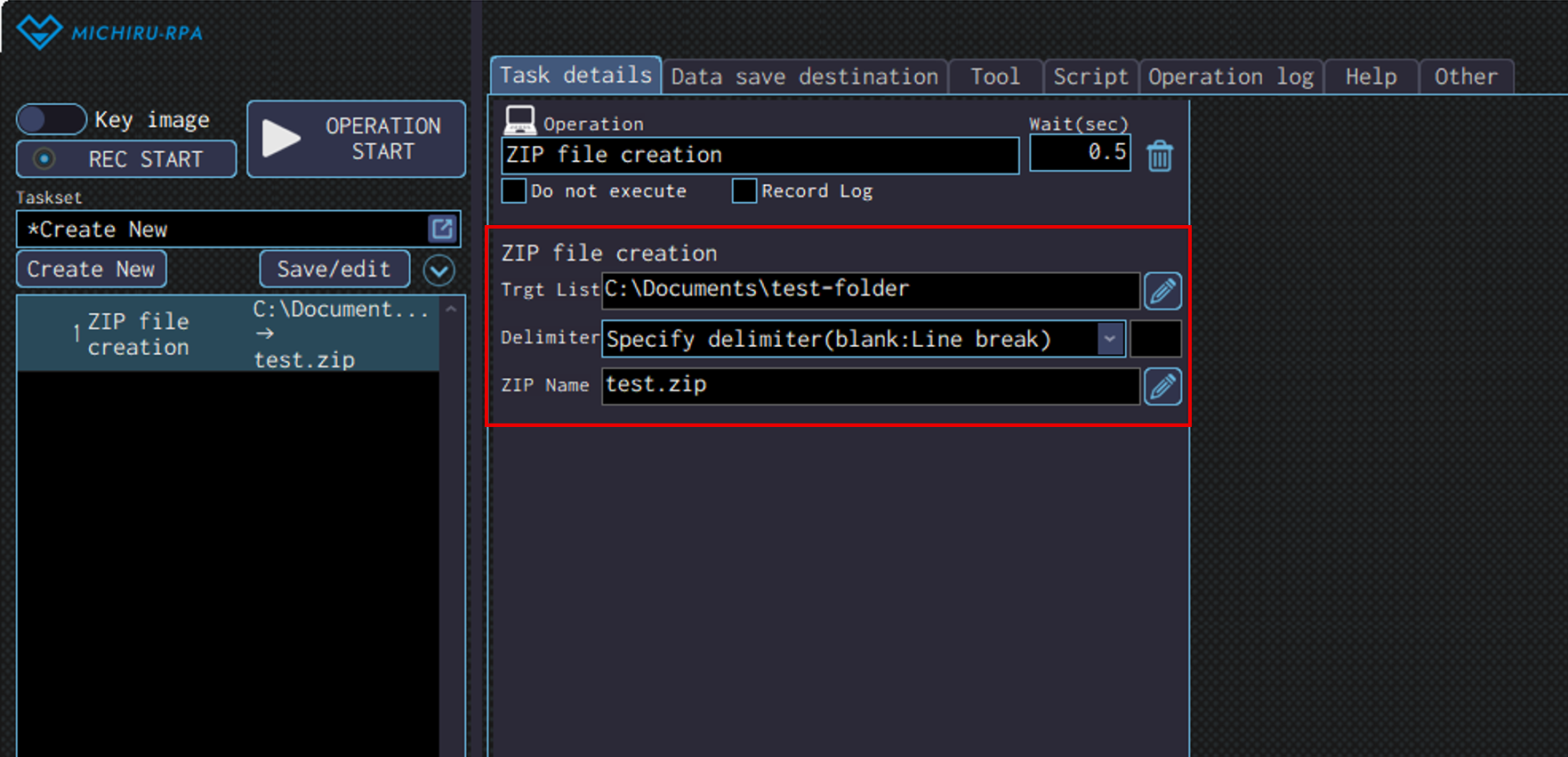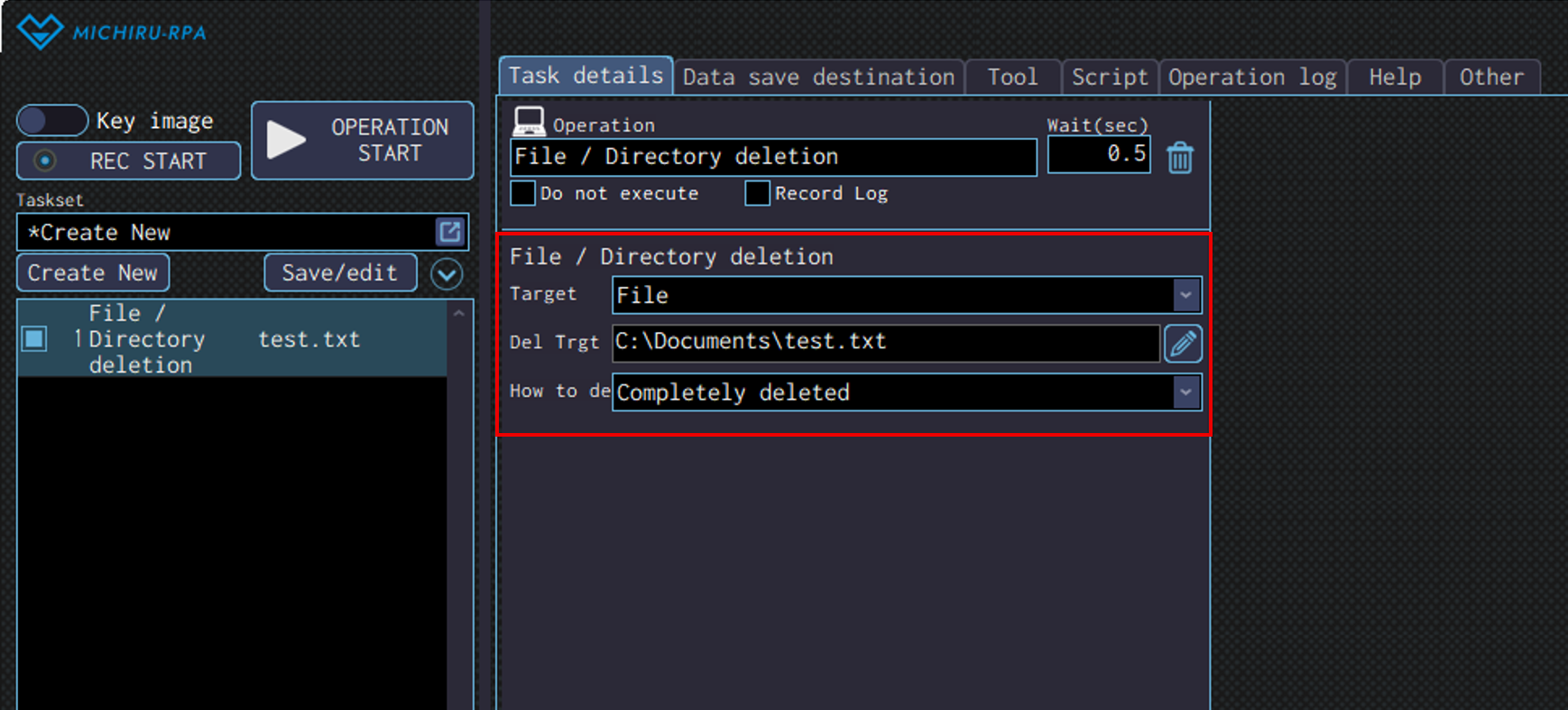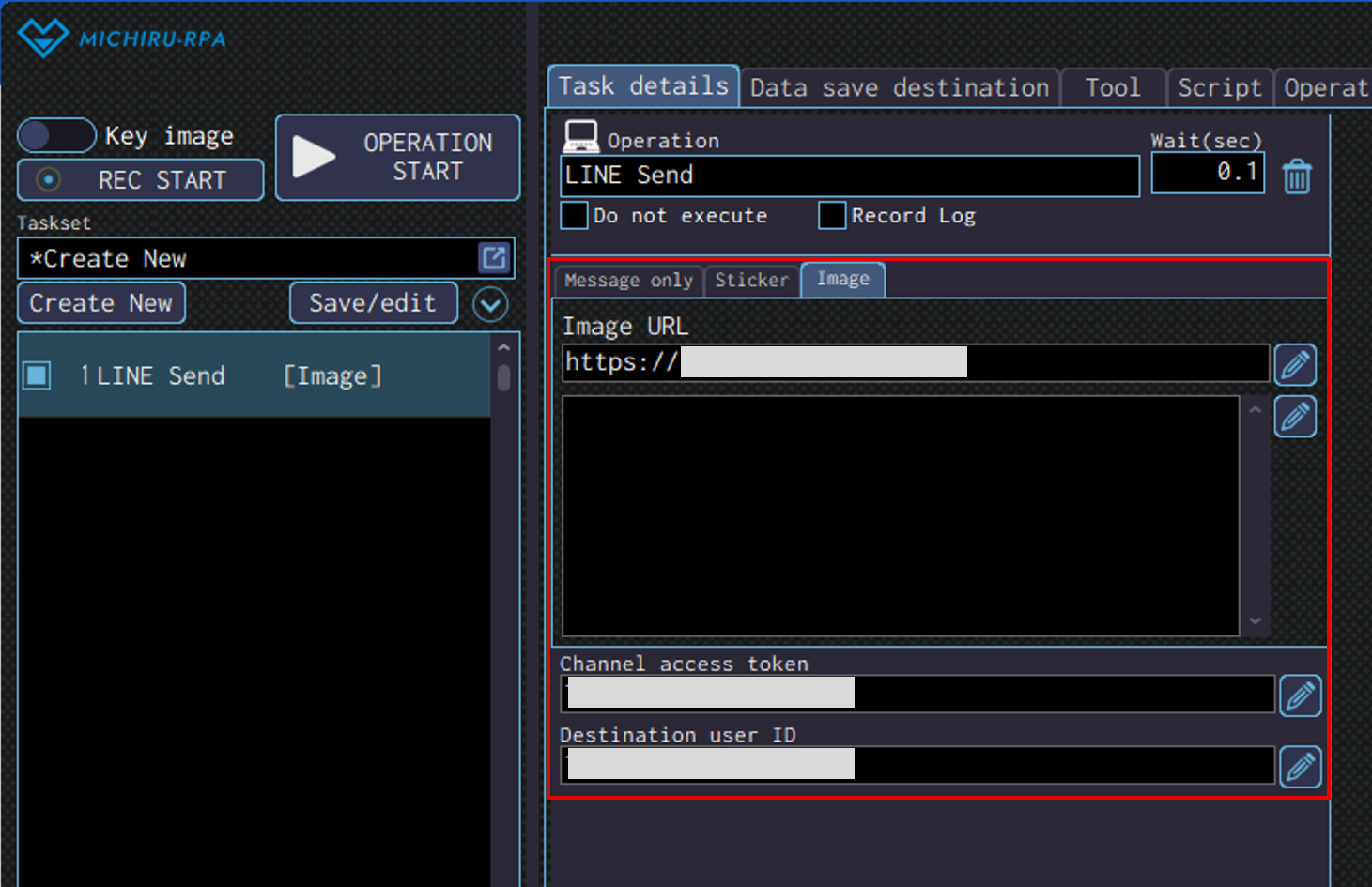 Detailed settings for each operation are to be done in the extension screen. For more information regarding commons settings across all operations, such as various settings in the targeted screen operation, how to specify points of operations, please refer to ‘MICHIRU RPA Mechanism and Detailed Settings‘.
