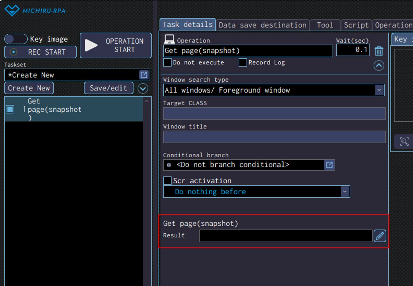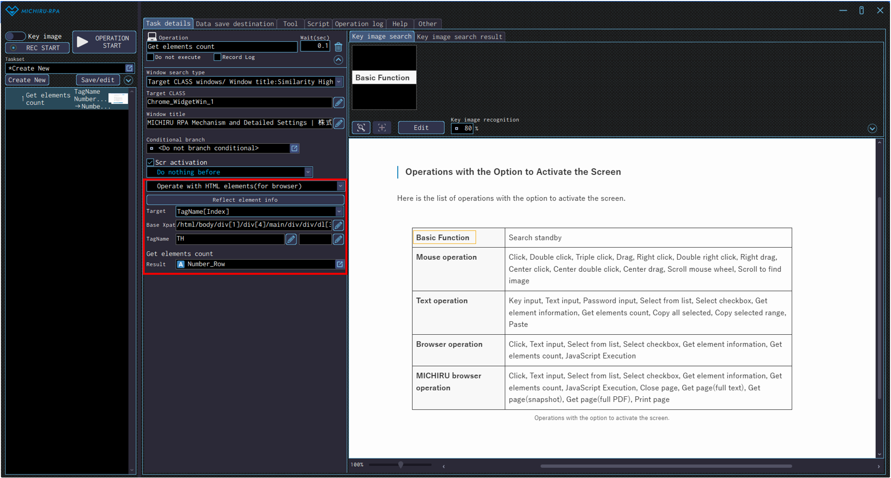 Move the cursor over the target element, press the shortcut to capture the image / element, then change the operation type in the operation box to “Search standby” in the “Basic function” menu.