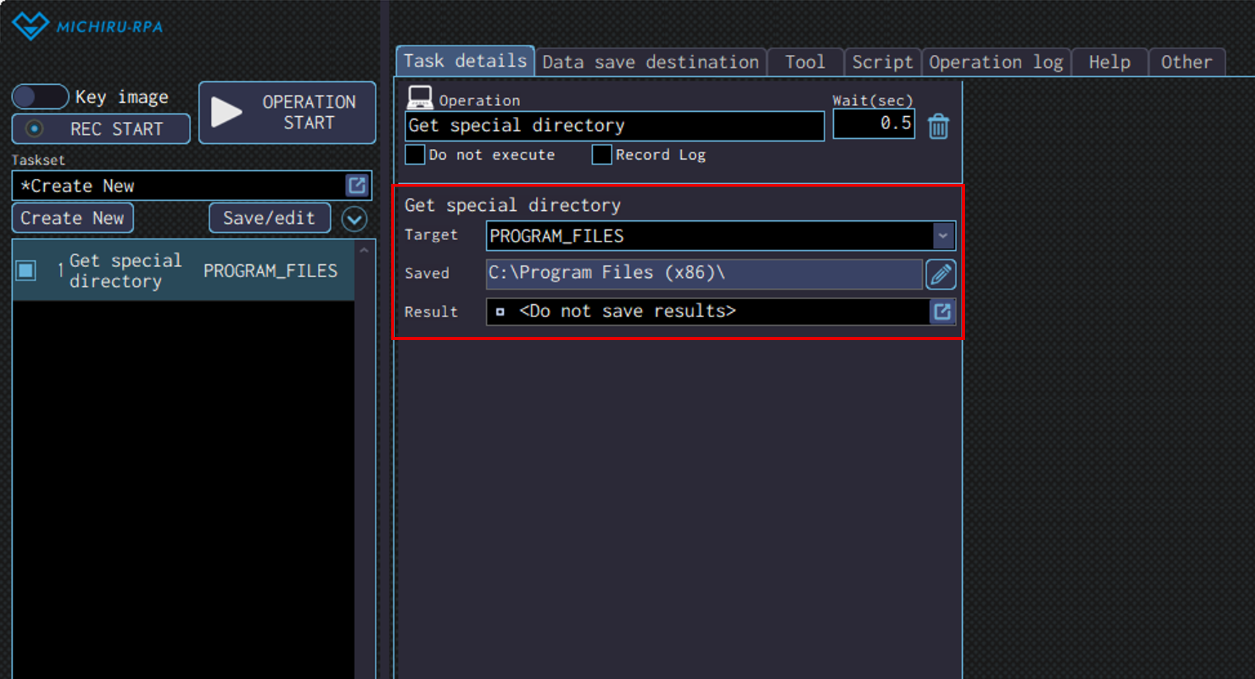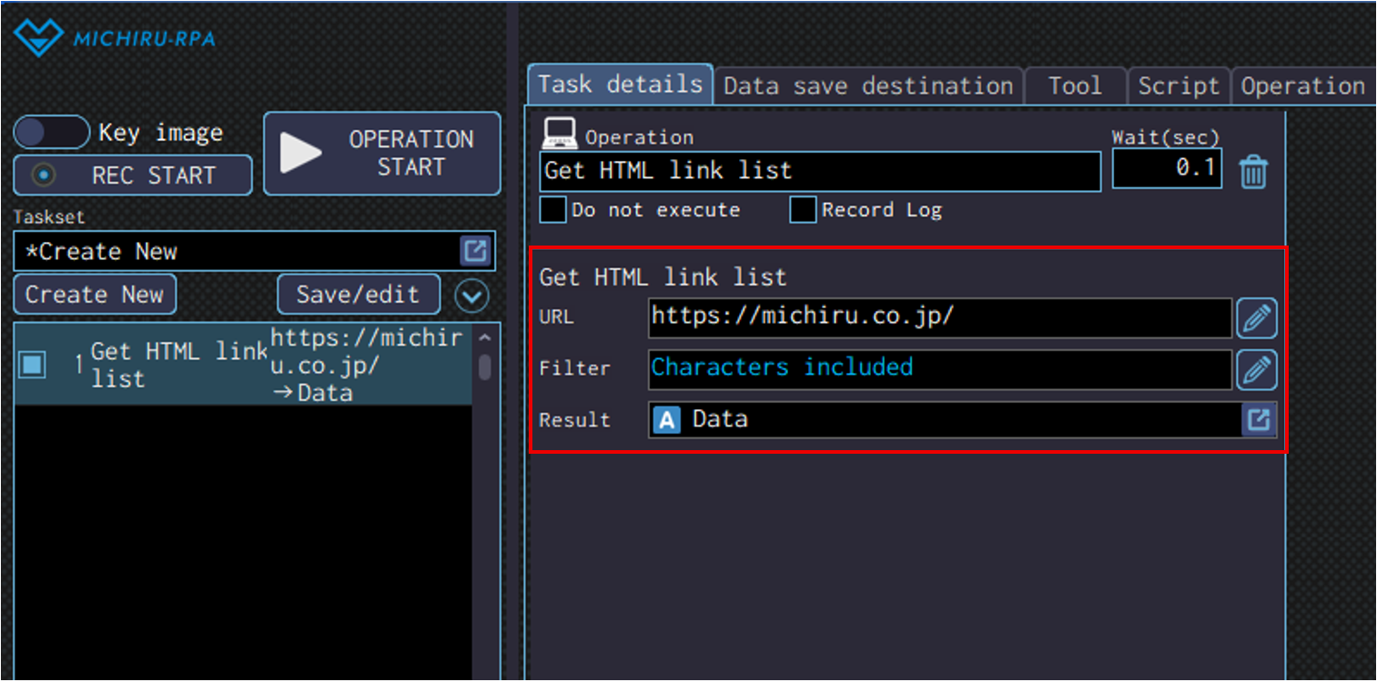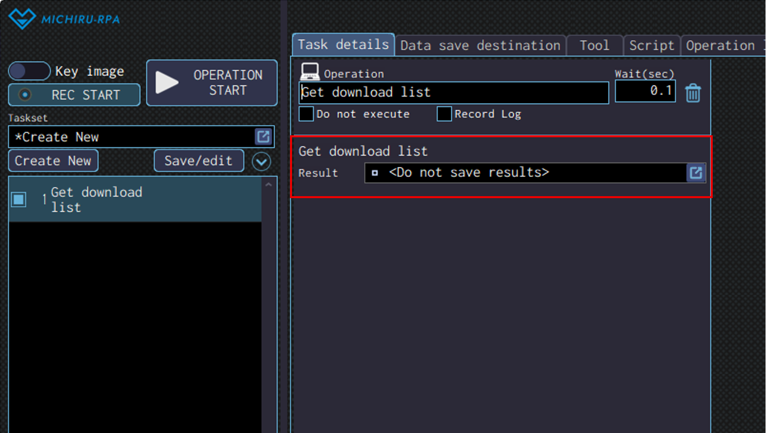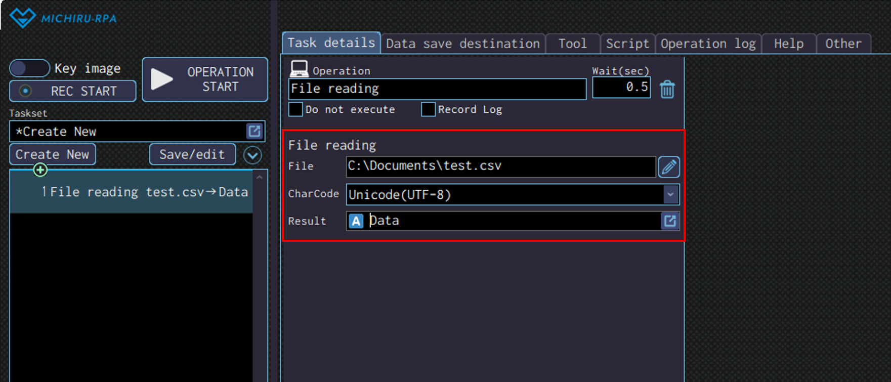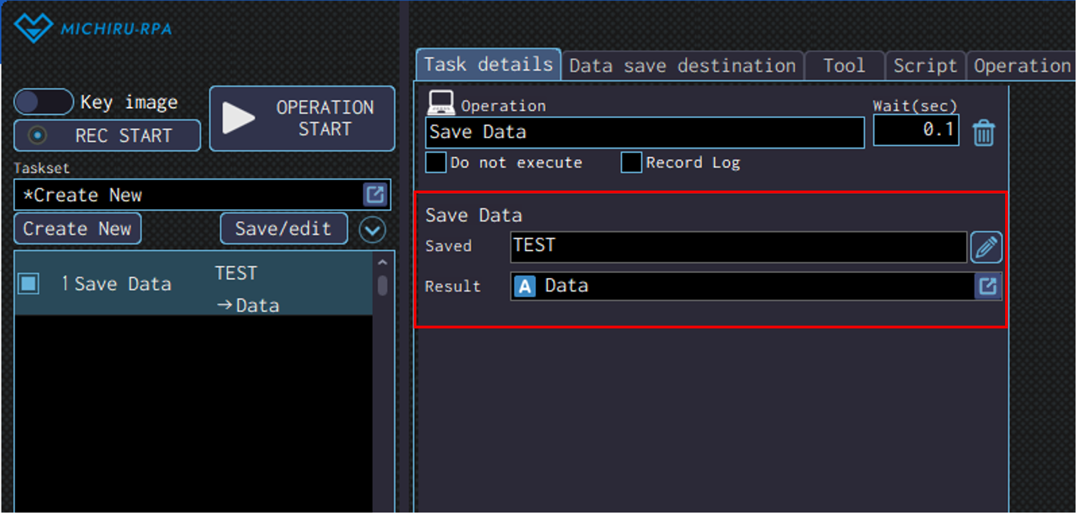 Specify the data save destination to save the data read in the “Result” field.
