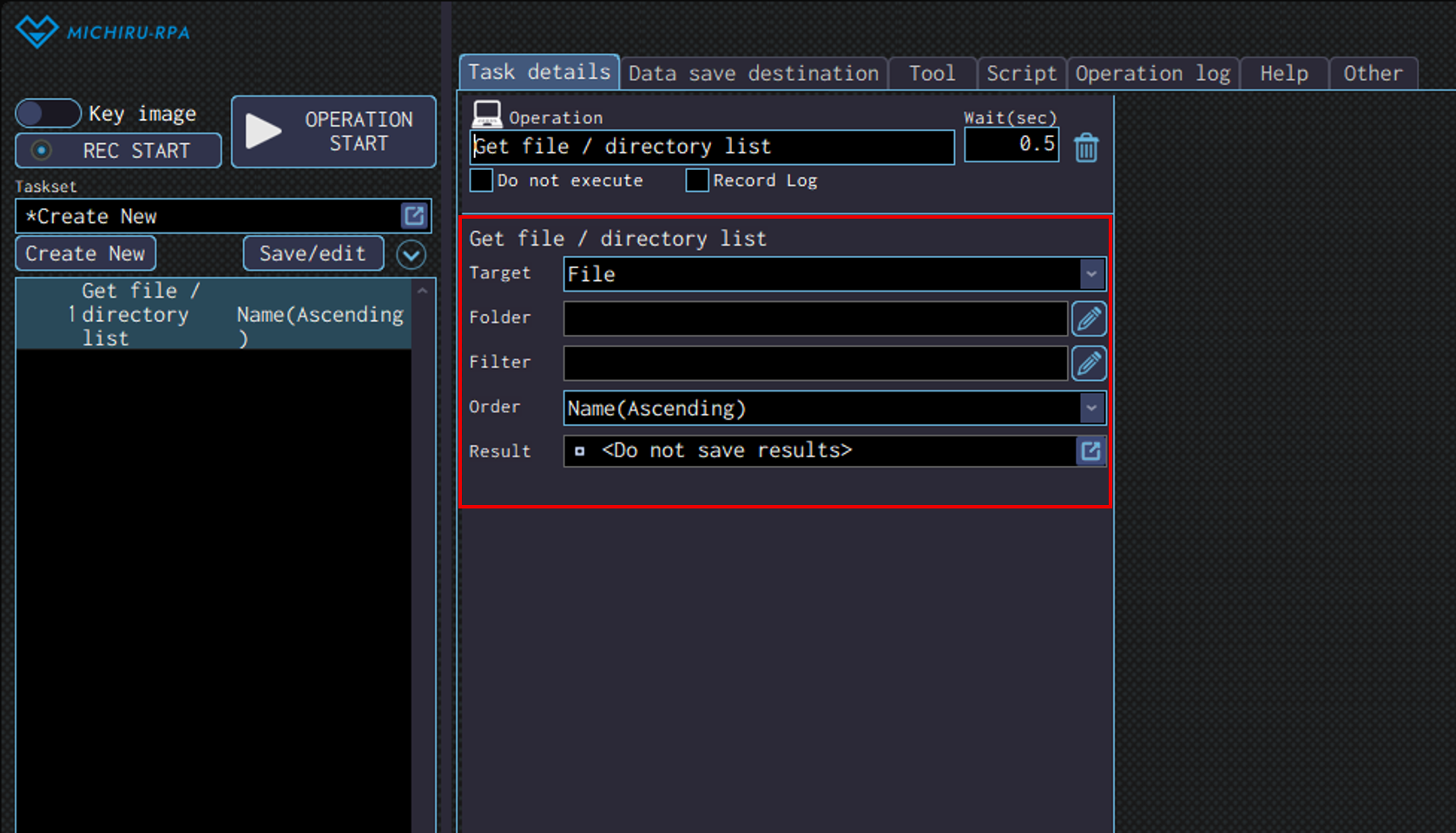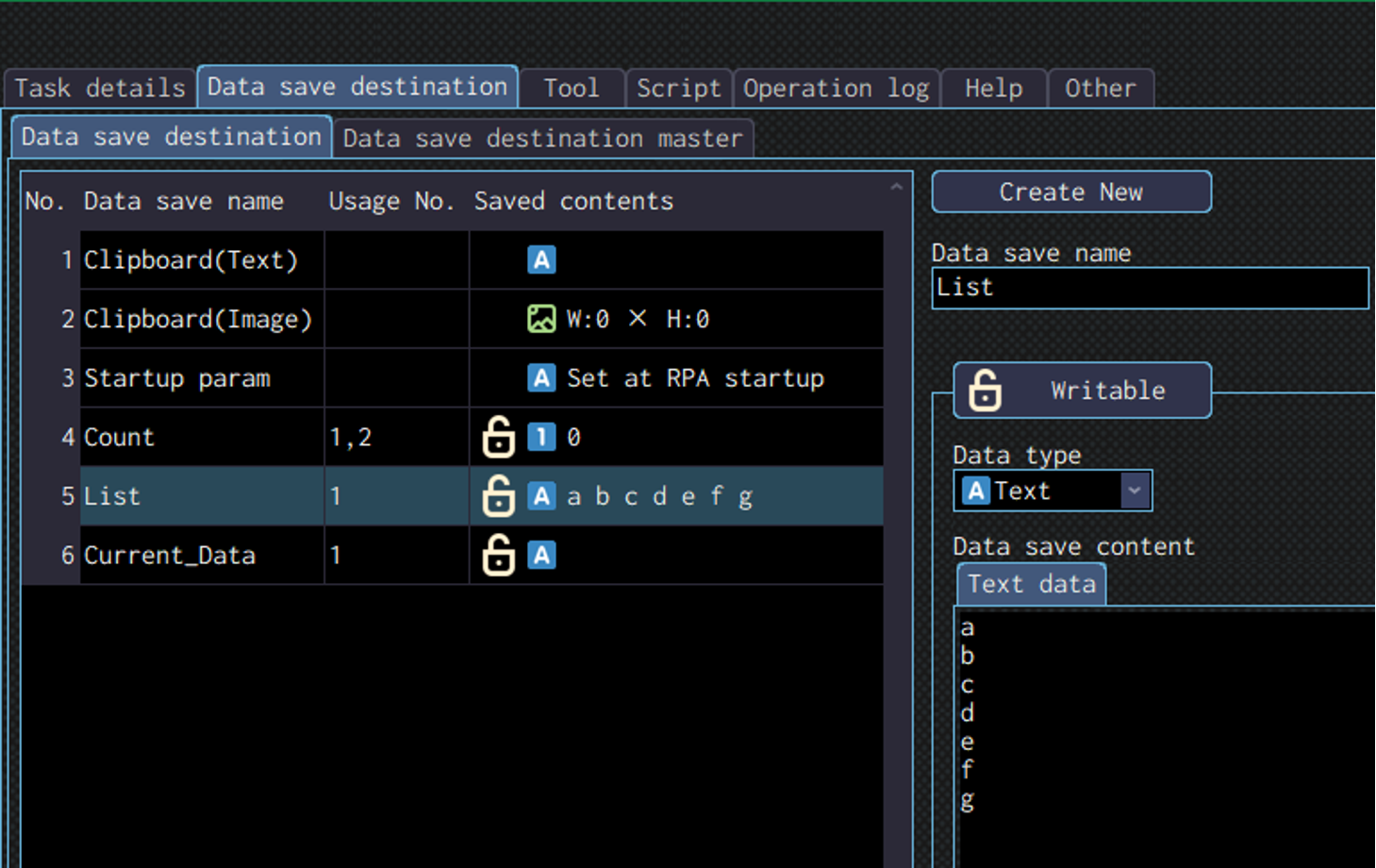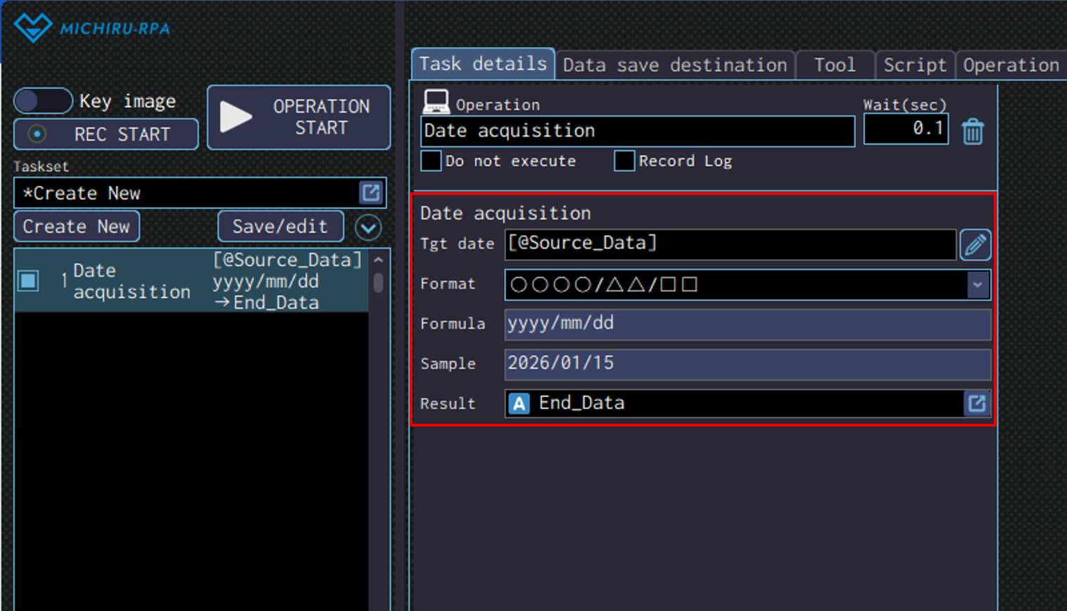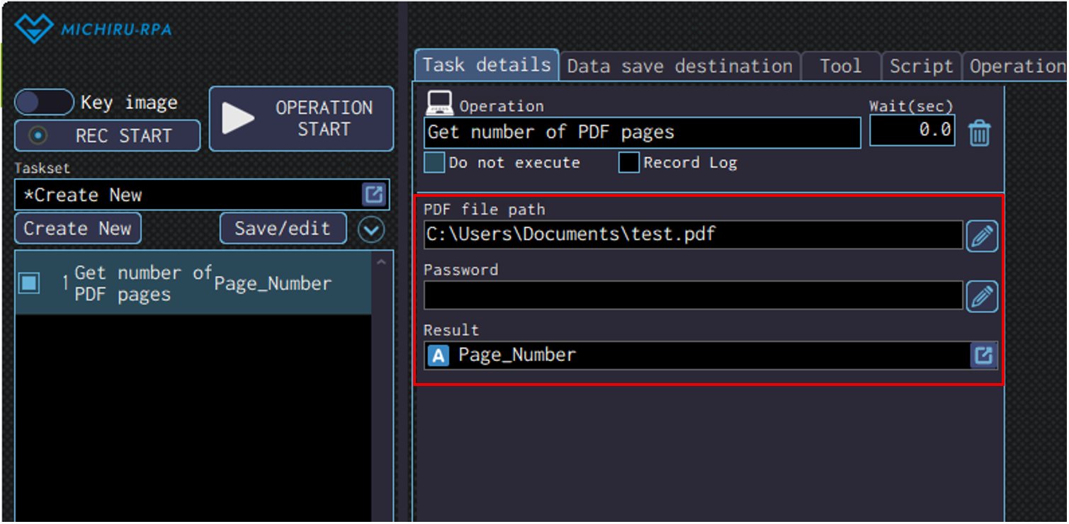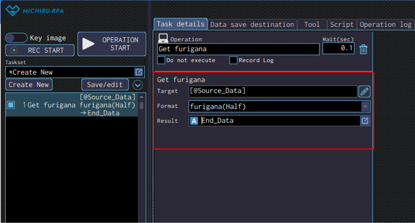 Specify the data save destination to save the data read in the “Result” field.