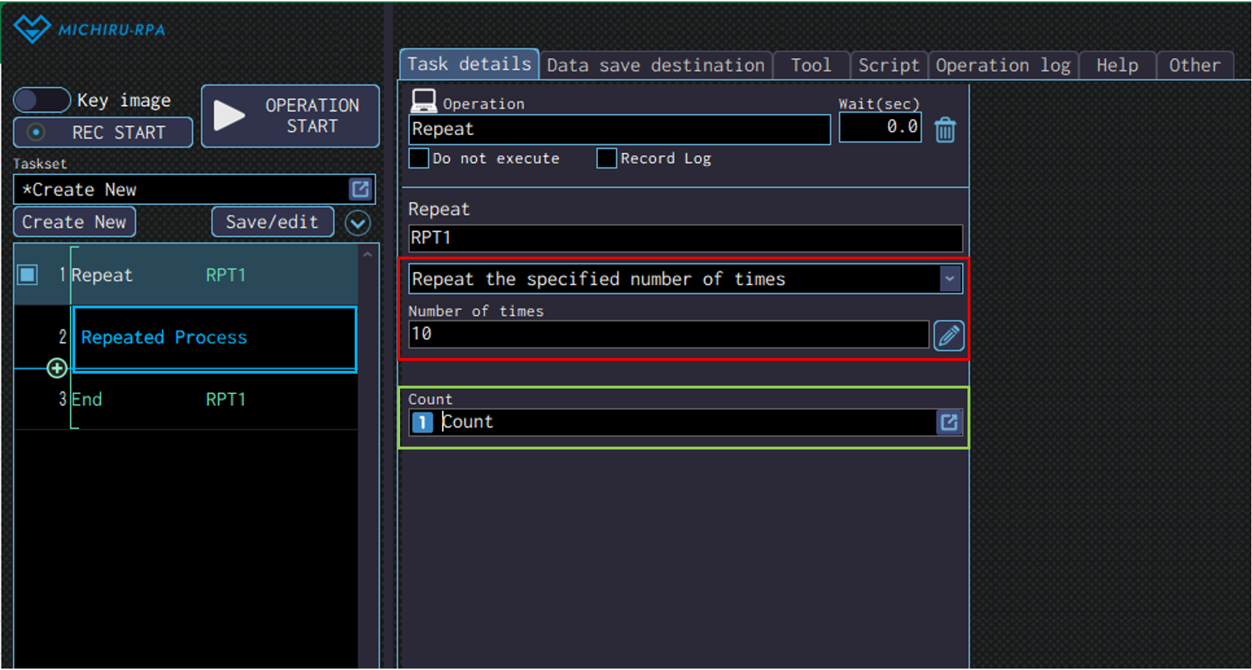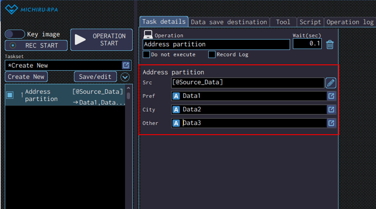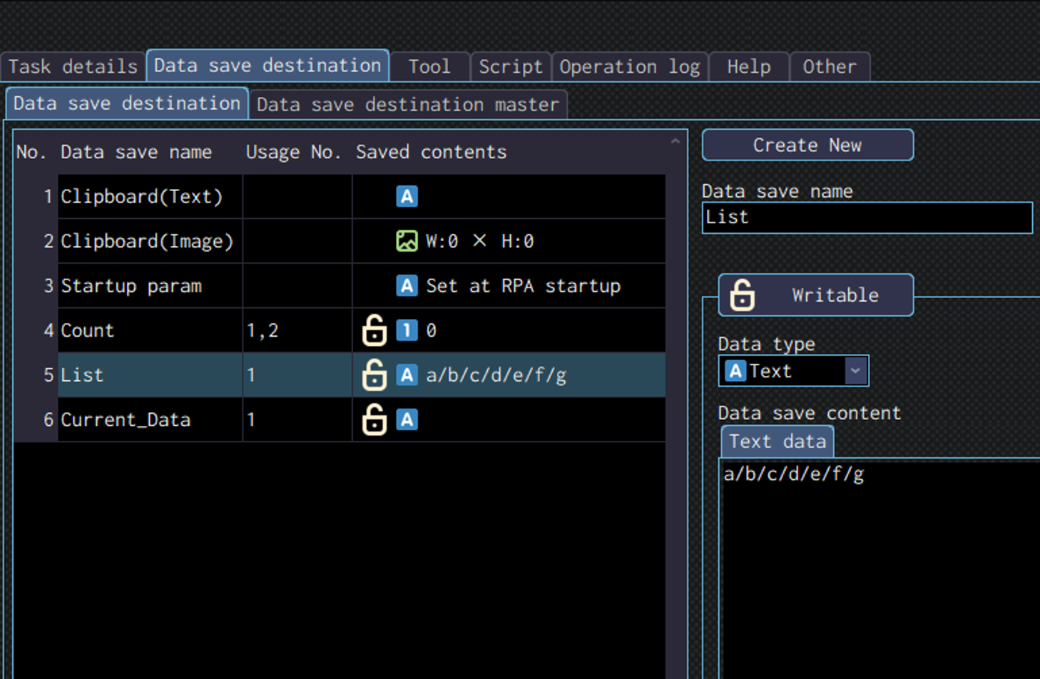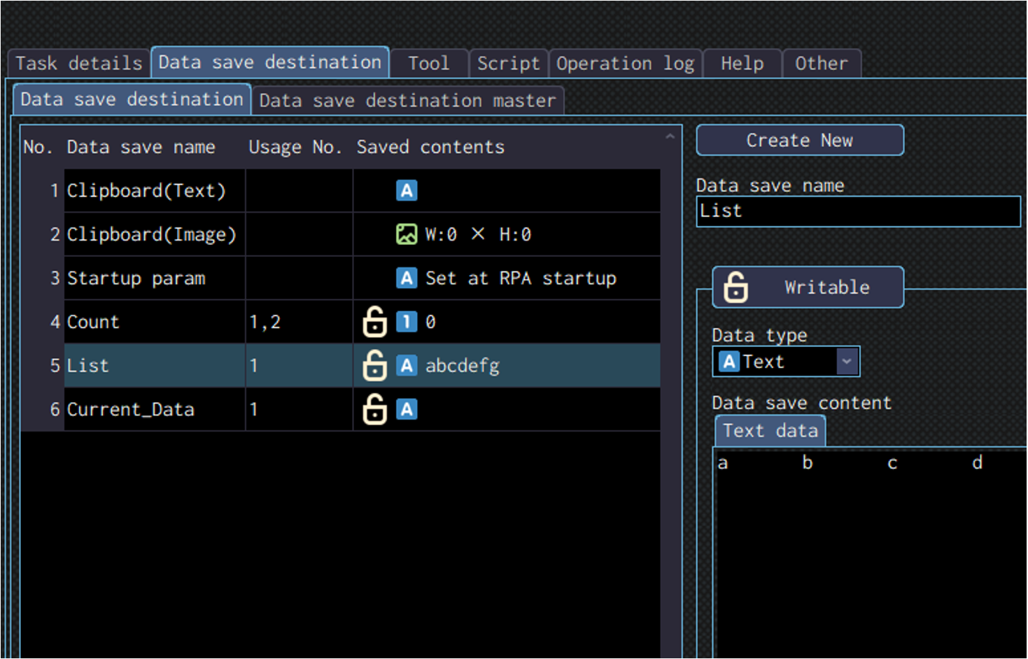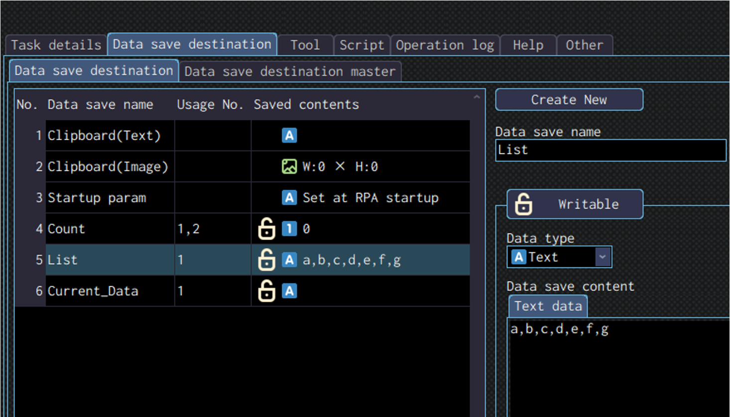 Specify the data save destination to save the data read in the “Result” field.