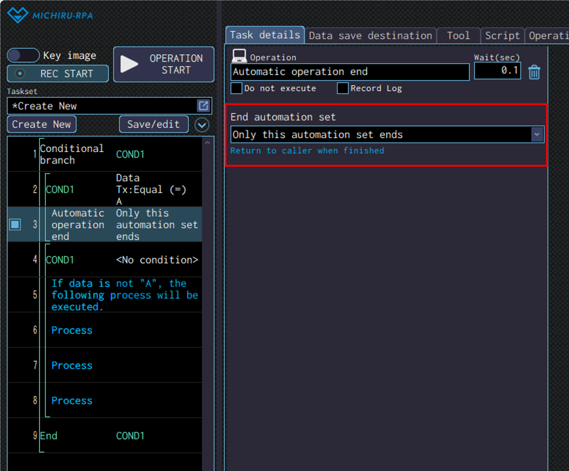 | Call the automation set if it cannot be read | Call an automation set that is already saved. |