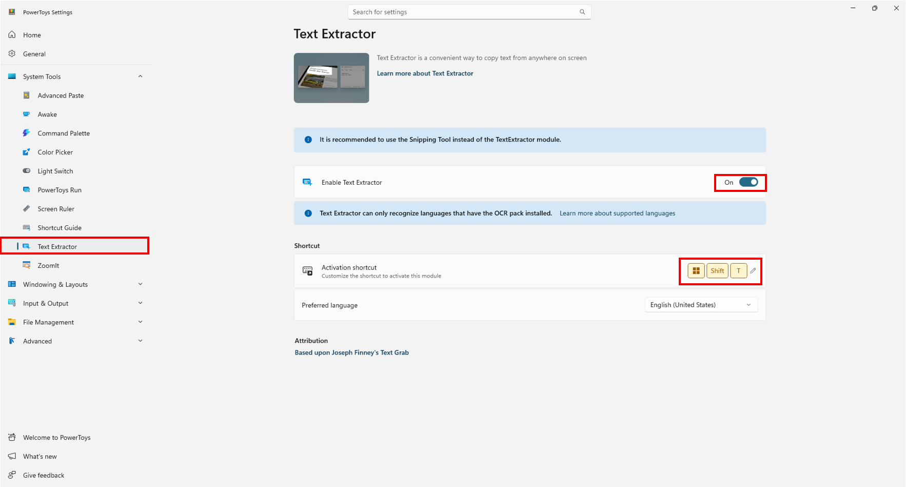 You need to launch PowerToys application first before using the OCR function. Please choose whether to launch manually from Windows menu, or to have it launched automatically when the PC is turned on (refer to the image below).