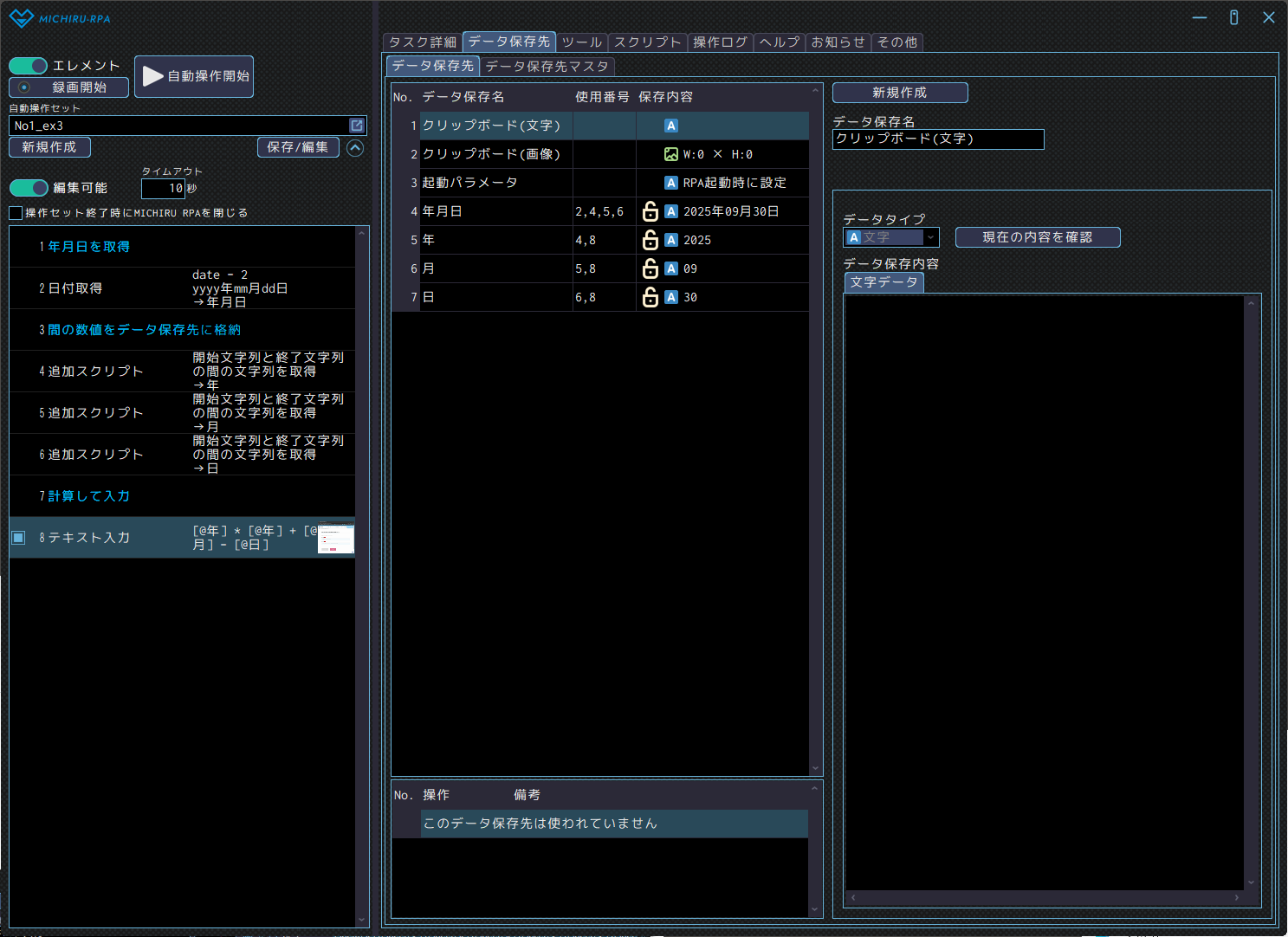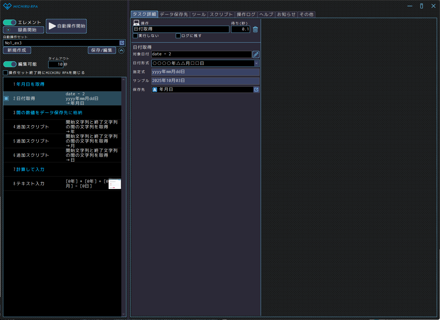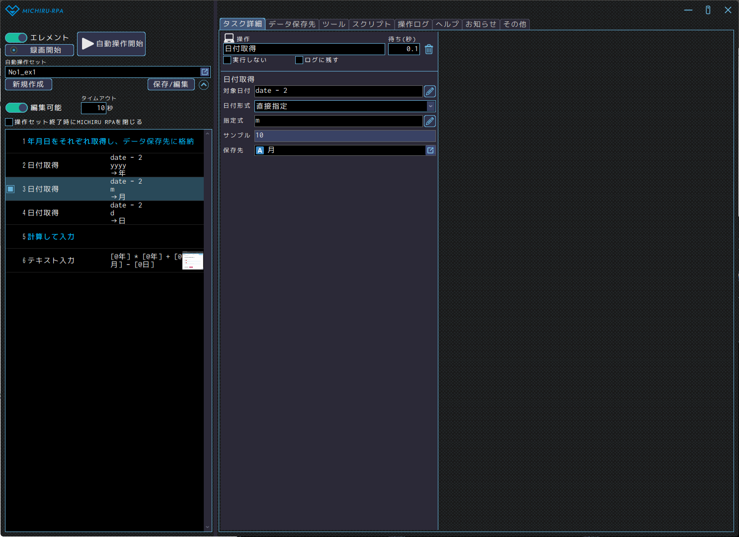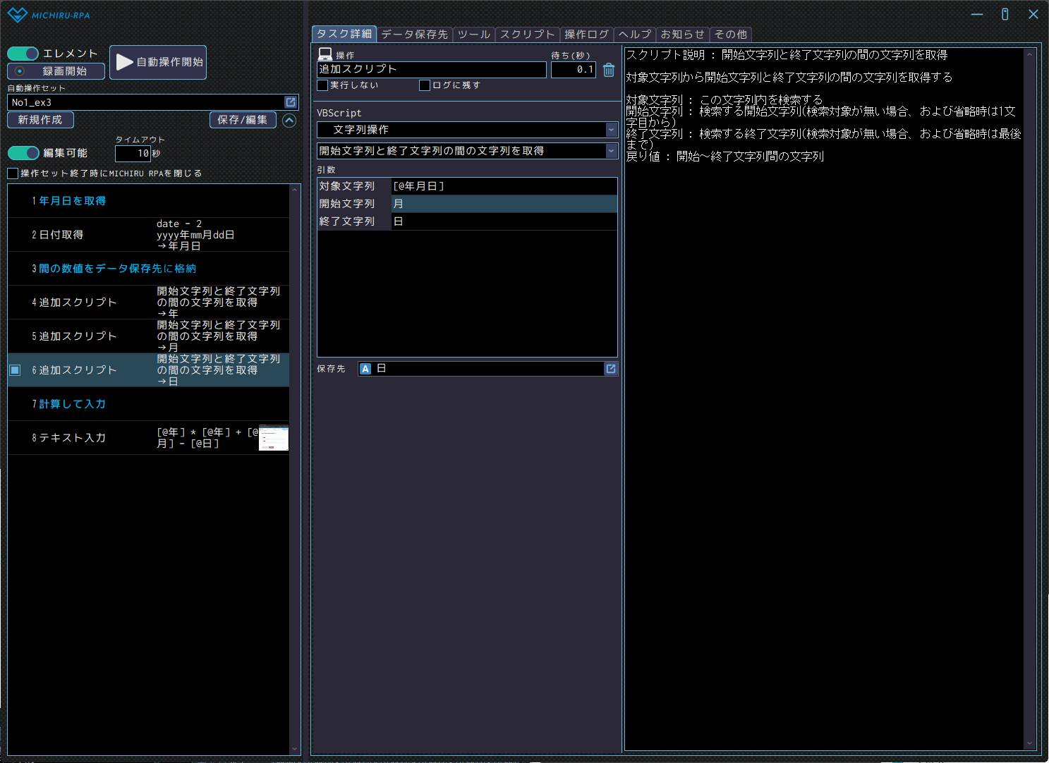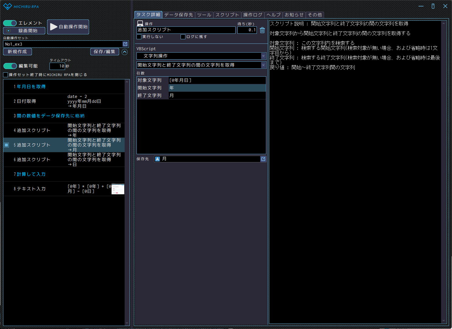 解答例3:日付を取得し、指定文字間の値を取り出してデータ保存先に格納する方法