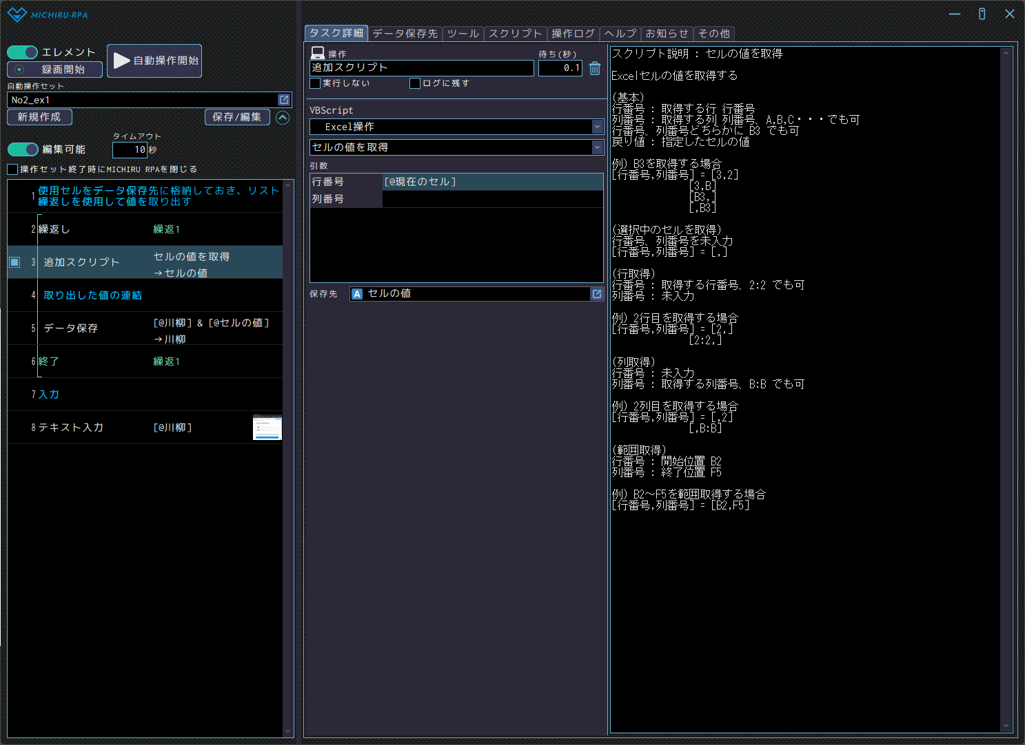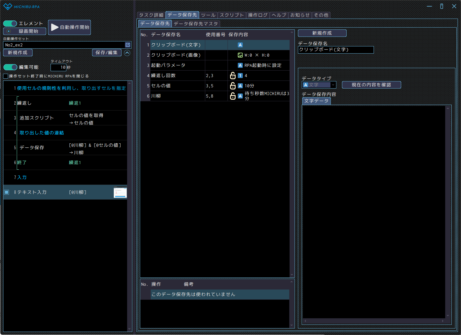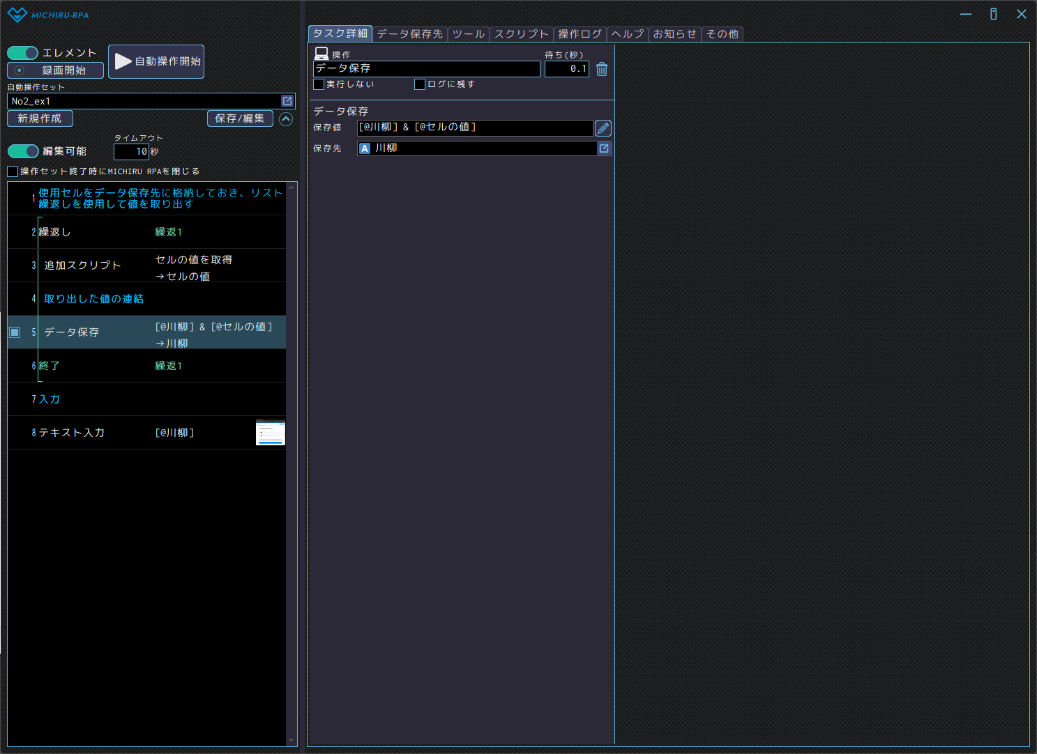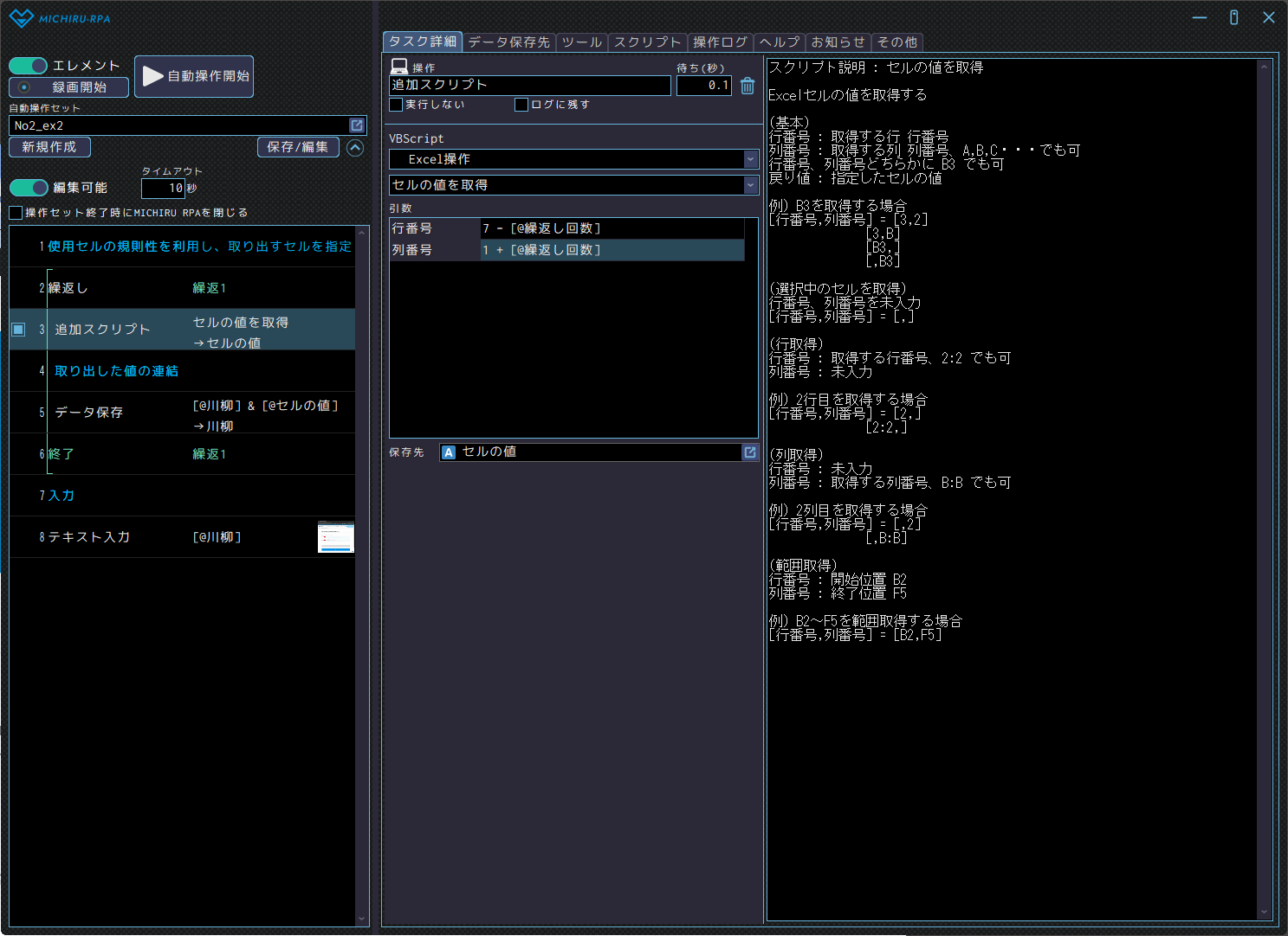 繰返し内のカウントに指定したデータ保存先には、初期値「1」から1ずつ加算された数字が入ることを考慮して計算式を作成します。