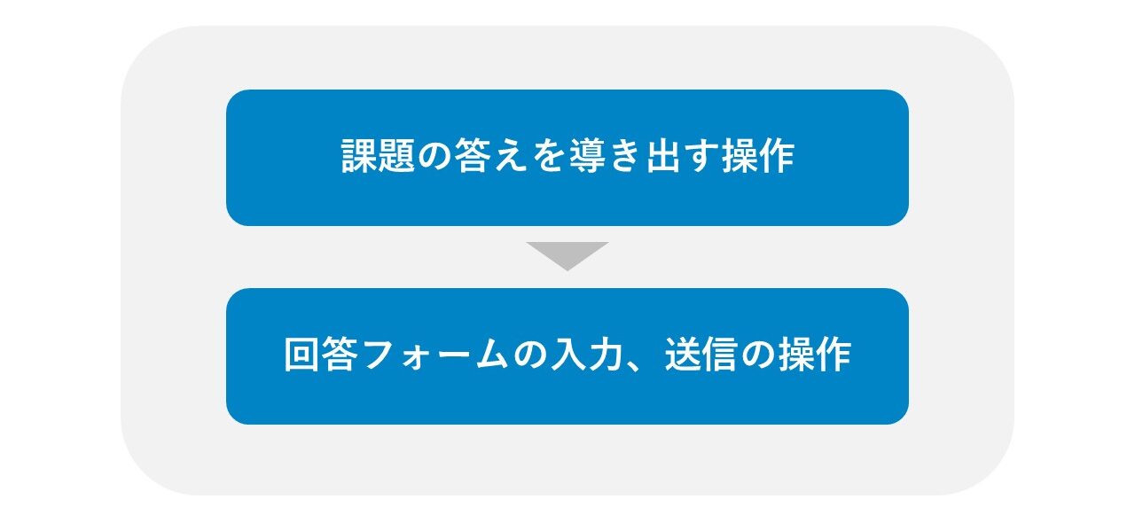 課題を解き解答用フォームへ入力して送信ボタンを押すまでの流れを自動操作セットとして作成します。