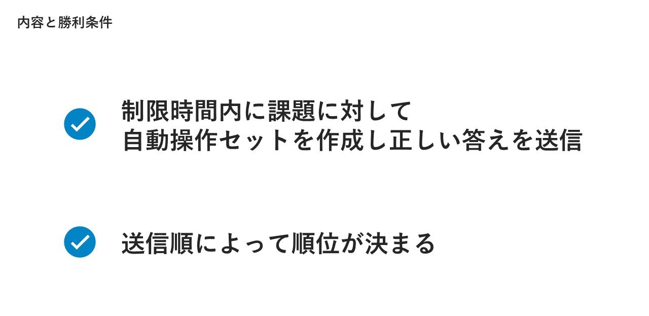 出題された課題の自動操作セットを作成し、制限時間内に答えを解答用フォームに入力して送信します。