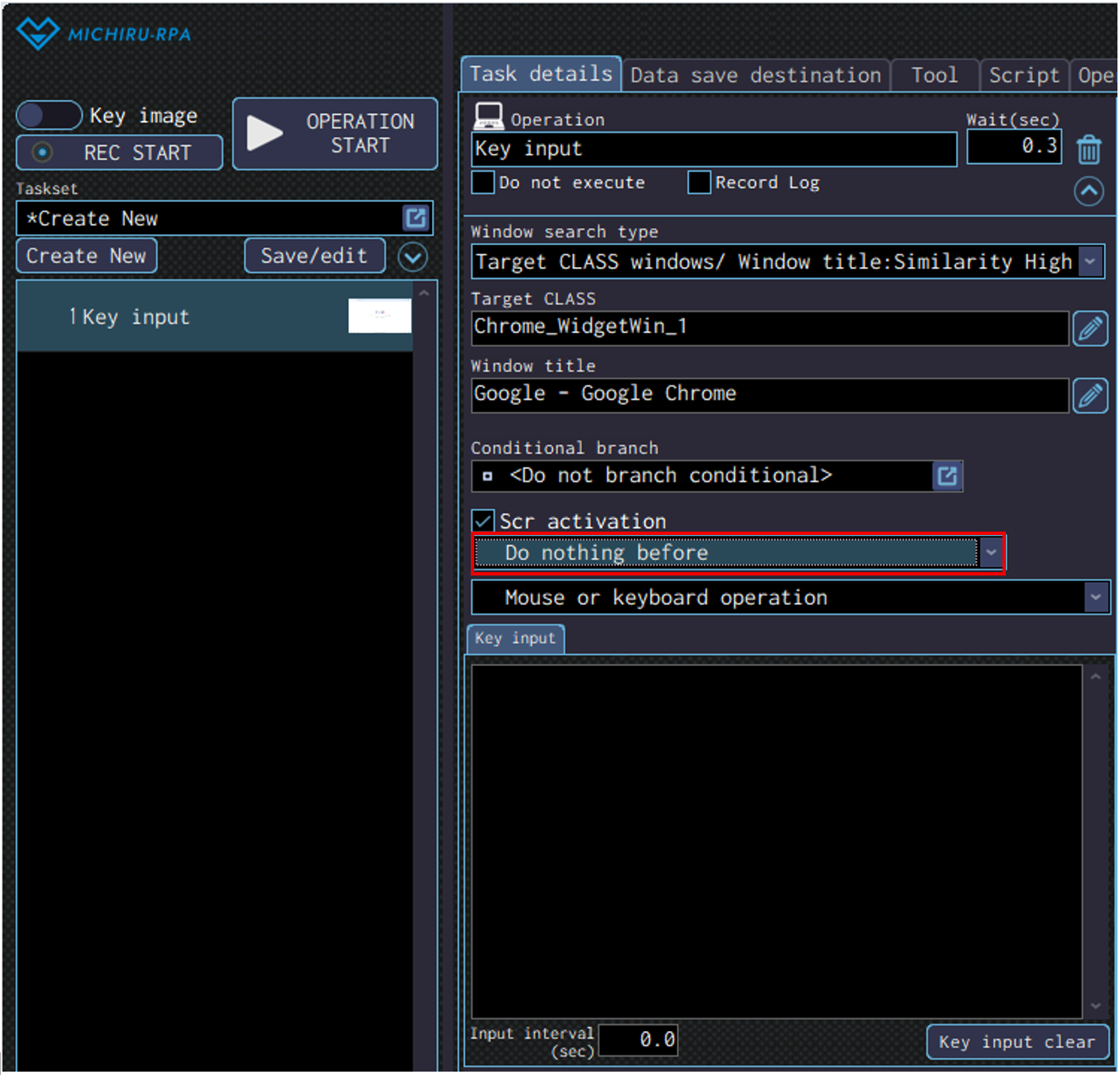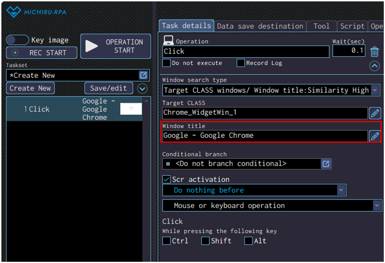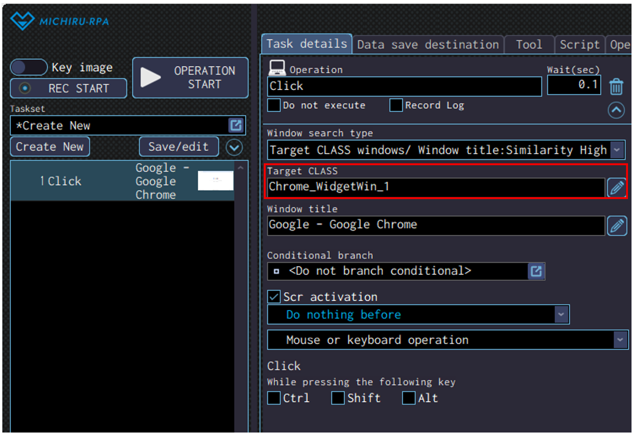 Normally, you won’t have to configure this for every operation you create. If you need to customize the search method by yourself, try combining the selection from the “Target CLASS” and “Window title” dropdown menu.