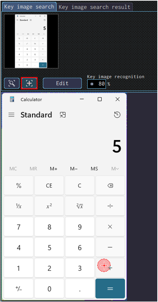 Configure the settings using an image to locate the position of operation like Click and Text input. The term ” Key Image” refers to the reference image used as a visual marker.