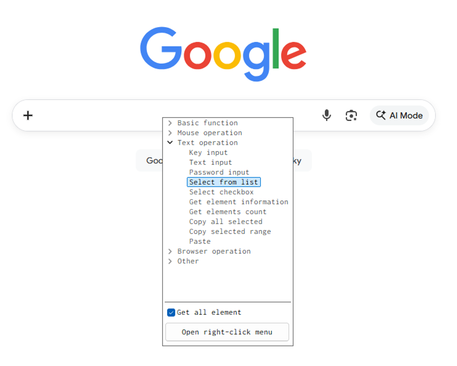 | Operate with HTML elements (for browser) | The operation will be executed using HTML information such as XPath or CLASS. For more information regarding Xpath, please refer to this page. This option is only available when operating on a browser. |