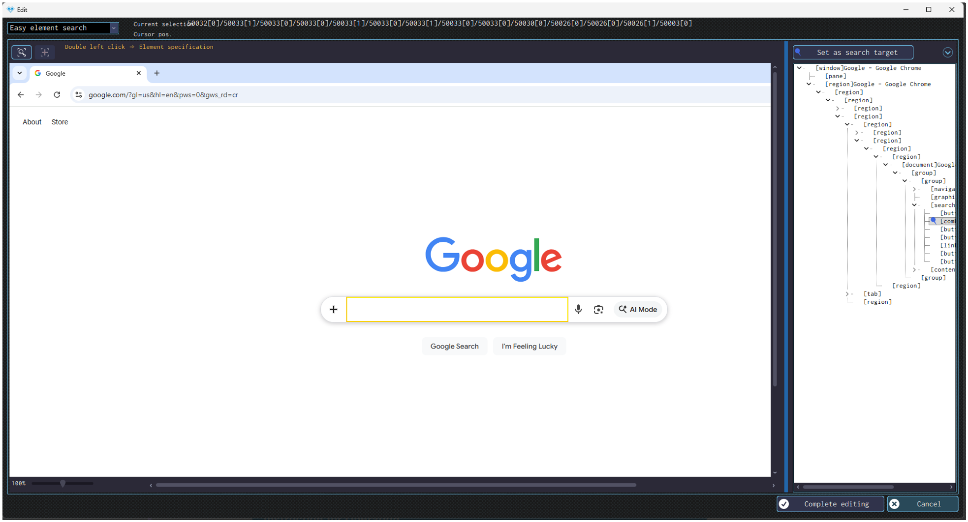 You can also selected the relevant element from the tree displayed on the right side of the screen. After selecting, click on “Set as search target” at the top right.